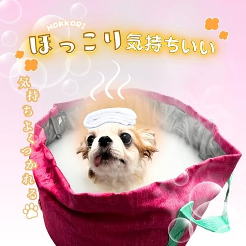 うちのようにお風呂好きの犬には良い感じと思いますが、お風呂嫌いな子だとじっとそもそも湯船に浸かってないだろうから、ちょっと難しいかもですね。