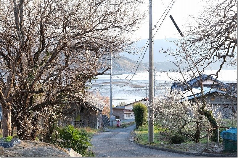 糸島市志摩にある小富士梅林です。海沿いの高台にある梅林で海街の路地や梅林の間を抜ける道を巡るコースでお散歩にもいい感じのとこです。