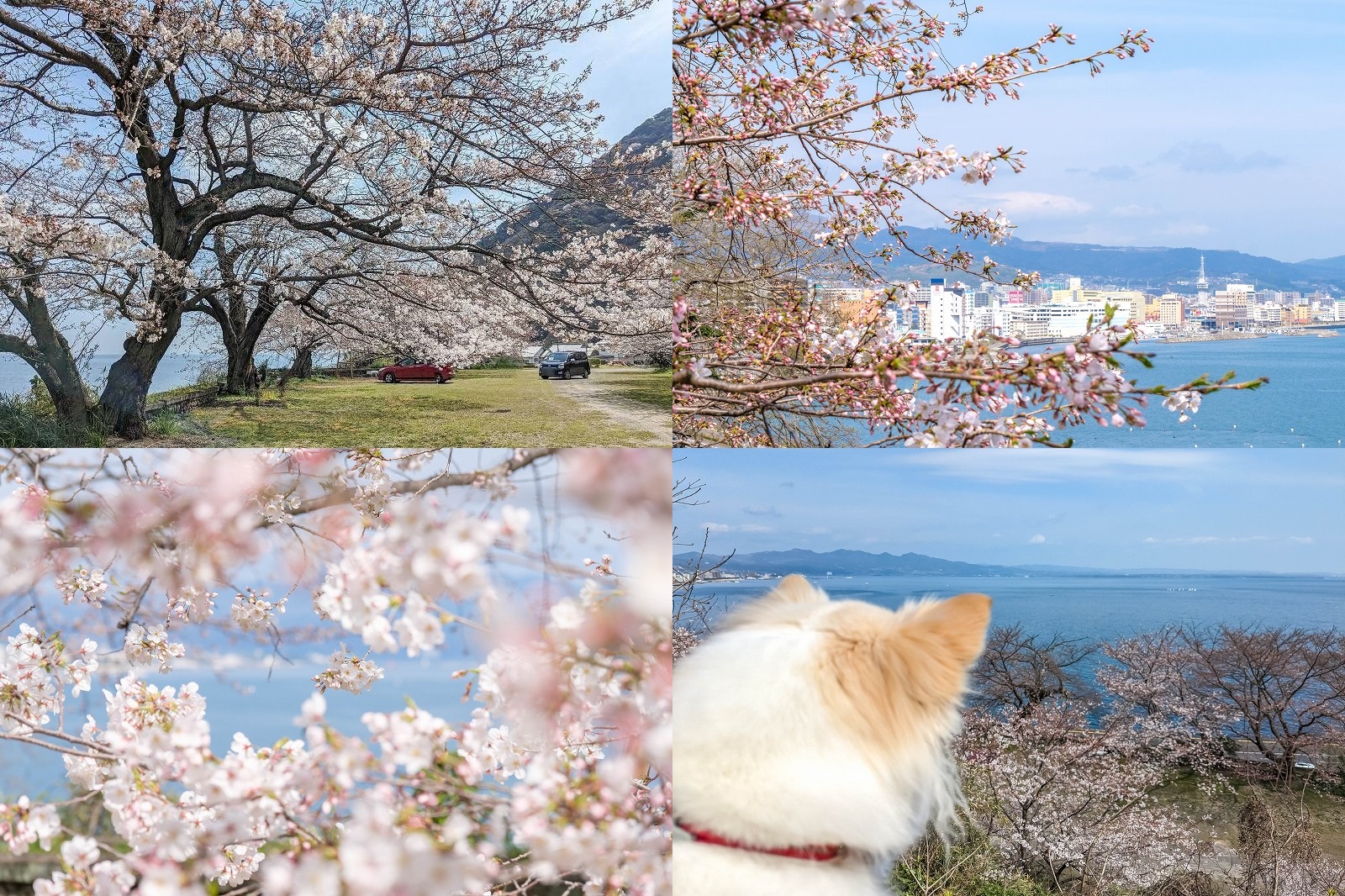 ここに来る前に東別府の方にある、両郡橋地域広場で桜を見てきましたがキレイな海と桜が見えました。