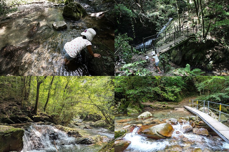 橋を渡った先から渓谷沿いにUP/DOWNしながら遊歩道は渓谷沿いに伸びていますが、なかなか厳しい道なので水遊びだけなら、ここが一番良いと思います。
